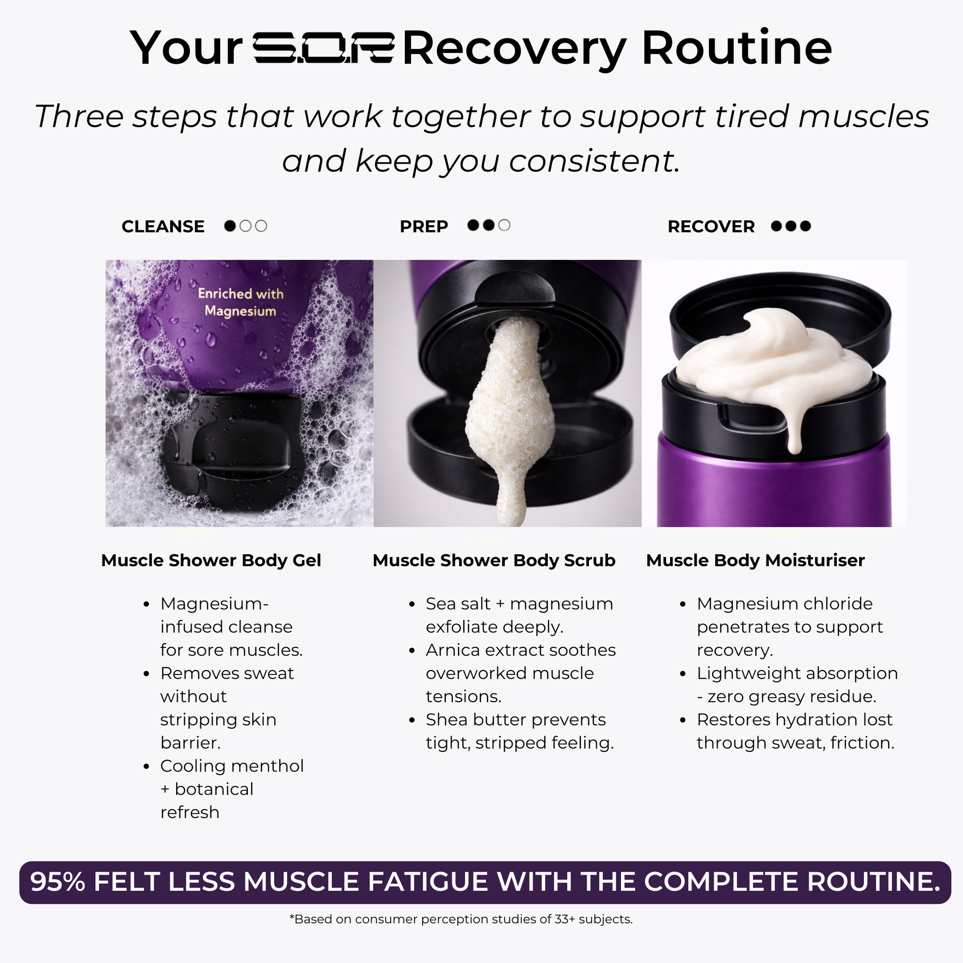 3 steps that work together to support tired muscles and keep you consistent.